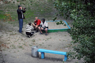 Eugene Kotenko chose one ordinary bench and was describing its life for four years. It had been gray but then was painted blue, trash bins appeared and disappeared and more new people kept coming to spend some part of their life on the bench.